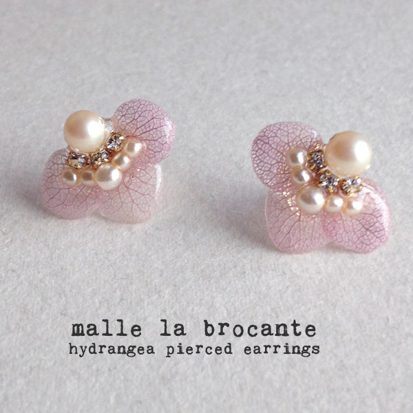 14kgfあじさいとビンテージパールの耳飾り mallelabrocante 本物の紫陽花のお花とビジューを合わせた春夏にぴったりのピアスORイヤリング。あじさいはプリザーブドフラワーを樹脂で固めています。お色は明るめのくすんだピンクです。天然のものにつき、花びらの色や大きさが全く同じものは1枚もありません。お届けの際は左右が極力近いものをセットしてお届けします。 詳細・ショップページへ 投稿日:2016/03/26(Sat) 18:21記事No:163