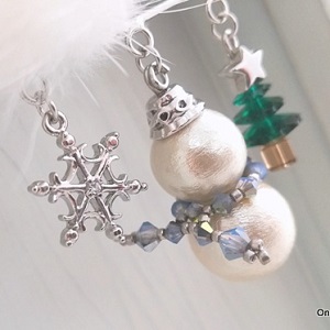 ゆきだるま&ツリーのカブトピン OnceMore アイボリーのコットンパールを重ねたゆきだるまにはスワロフスキーのマフラーを巻き付けて。グリーンのスワロフスキー花型を重ねたツリーの幹にもキューブ型のスワロフスキー。中心にストーンが輝く雪の結晶チャームはペラペラでない上品なもの。純白のミンクファーを添えた大人のピンブローチです。 詳細・ショップページへ 投稿日:2019/11/25(Mon) 14:14記事No:287