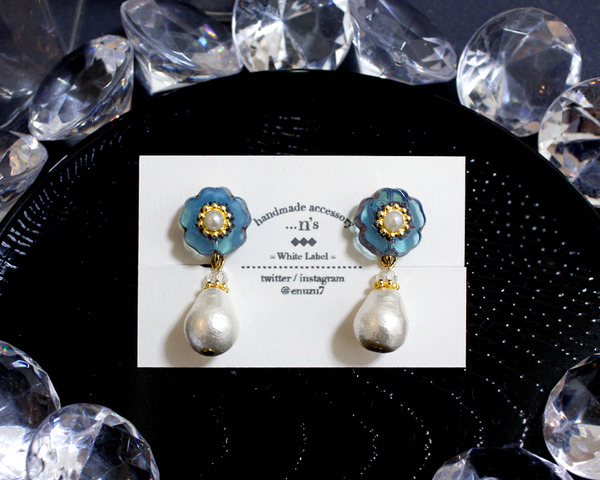 氷でできた椿を連想して制作したお花のイヤアクセ。