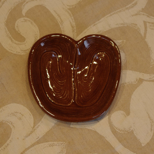 パルミエ皿 メアリー・ブラウン パイ生地を両端から折ったものを輪切りにして焼いた、ハート形のフランス菓子「パルミエ」を器にしてみました。色はツヤのある「あめ釉」でおいしそうに仕上げました。サイズ:縦10.5×横10.5×高さ1.5cm よしざわ窯 陶器 益子焼 日本製 詳細・ショップページへ 投稿日:2020/02/22(Sat) 18:16記事No:3335