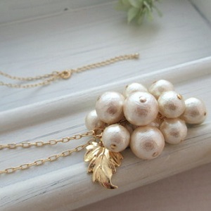 葡萄のペンダント(コットンパール・アイボリー) OnceMore アイボリーのコットンパールを綺麗な房状にまとめた葡萄モチーフ。さらさらと動きのある粒が軽やかに踊ります。程良い大きさのゴールドリーフがモチーフの引き締め役。コットンパールのクラシカルな雰囲気と趣のあるスクエアなコマのチェーンがマッチしています。大きめモチーフなのに驚くほど軽いのが魅力。みぞおち辺りの長めに着けるのがベストバランスです。 詳細・ショップページへ 投稿日:2019/11/08(Fri) 18:01記事No:3263