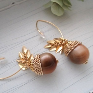 どんぐりピアス(Vintage-グラデーション) OnceMore ブラウン~キャメル、ベージュ~クリーム時としてカーキといった幾色ものグラデーションが美しいヴィンテージビーズを使いました。角度を変える都度、色の出方が違って見えるミラー効果があり単色でない面白さが最大の魅力です。ふんだんに下げたリーフでモチーフ全体に流れを出しました。お揃いのペンダントも。 詳細・ショップページへ 投稿日:2019/10/23(Wed) 19:37記事No:3255