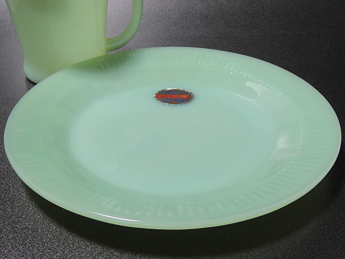 ファイヤーキング ジェーン・レイ サラダプレート アメリカン雑貨通販-OLD*SPICE 1946~65年まで製造が続いた美しい放射線状のエンボスが施された50年代頃のジェードカラーシリーズでジェーン・レイ サラダプレート未使用ラベル付です。19.5cmの中型サイズのお皿です。◎8,000円(税込)以上送料無料!◎会員登録でいつも全品5%割引! 詳細・ショップページへ 投稿日:2019/11/03(Sun) 13:01記事No:3258