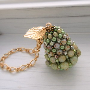 ラ・フランスのバッグチャーム OnceMore オリーブグリーンの地にベージュ系の不規則なまだら模様が入った雰囲気のあるチェコビーズ。見つけた瞬間、思い浮かんだのは「ラ・フランス」独特の果皮のイメージにぴったりです。所々にカラーパールやメタリックカラーを挿入することで単一でない個体になっています。 詳細・ショップページへ 投稿日:2019/09/18(Wed) 09:47記事No:3247