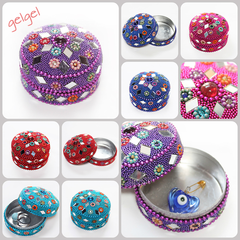 トルコのビーズフラワー小物入れ トルコ雑貨ぎゃるぎゃる 倉敷 トルコの職人さんがビーズや鏡などをひとつひとつ貼り付けて作ったアルミ製の小物入れです。カラフルなお花のデザインが可愛いです。小ぶりで軽いです。中に指輪やピアスなどのアクセサリーを入れてお使いいただければと思います☆サイズ(約)高さ3cm、直径5.7cm。 詳細・ショップページへ 投稿日:2019/09/20(Fri) 14:56記事No:3248