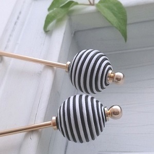 モノトーン巻き玉のかんざし OnceMore 黒×白のロー引きコードを巻き付けた大玉デザインビーズ。モノトーンのストライプが個性的です。アップした髪にしっかり挿せる安心な長さです。和装に限らず洋装に合わせても楽しいモダンな一品です。 詳細・ショップページへ 投稿日:2019/07/14(Sun) 17:43記事No:3224