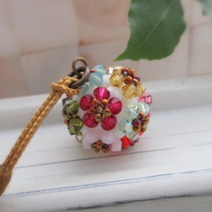 花手毬の根付け・帯飾り OnceMore コロンとしたフォルムが可愛い、小花を集めた手毬風のビーズボール。乳白色の下地にスワロフスキーの各色を丁寧に重ねて飾りました。すべて違う12色のお花はどこから眺めても心がなごむ可愛らしいカラー。配色違いも販売中です。是非一緒にご覧くださいませ。 詳細・ショップページへ 投稿日:2019/06/22(Sat) 19:48記事No:3219