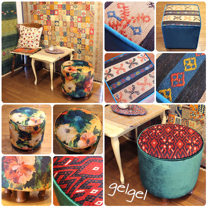 トルコのベルベット&オールドキリム椅子 トルコ雑貨ぎゃるぎゃる 倉敷 トルコの職人さんがひとつひとつ丁寧に作った椅子です。ベルベットのさわり心地がとってもなめらかです。上面がオールドキリムで作られたものも素敵です。足元は4カ所で支えられ、しっかりしています。カラフルでお洒落なデザインがお部屋を華やかにしてくれます☆ 詳細・ショップページへ 投稿日:2019/03/26(Tue) 13:58記事No:3188