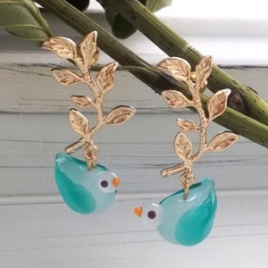 ガラスの小鳥とリーフのピアス OnceMore 耳元で小鳥のさえずりが聞こえそう。とんぼ玉のコトリビーズはふっくらしたフォルムとつぶらな瞳がキュート! 詳細・ショップページへ 投稿日:2020/07/07(Tue) 09:09記事No:3391