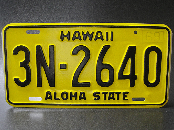 ★60’sハワイ州ナンバープレート アメリカン雑貨通販-OLD*SPICE 1969年製アメリカ合衆国ハワイ州のアロハ・ステート自動車ライセンスナンバープレートイエローベースにブラック表記です。当時使用されなかった未使用品です。◎8,000円(税込)以上送料無料!◎会員登録でいつも全品5%割引! 詳細・ショップページへ 投稿日:2020/06/06(Sat) 22:57記事No:3385