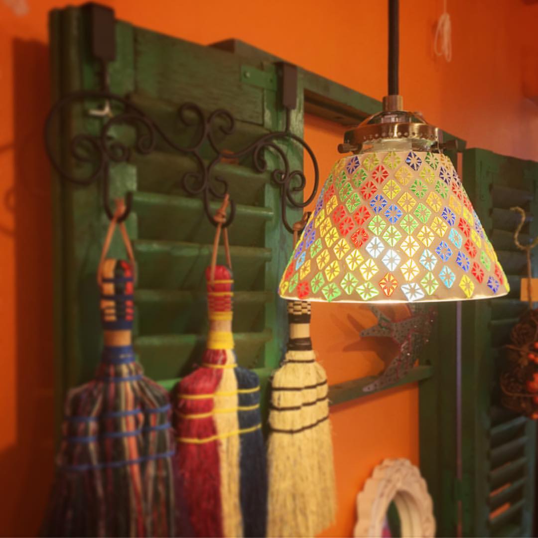 モザイクガラスのペンダントランプ再入荷しました Oranzovy インテリアのポイントにぴったりのモザイクガラスのペンダントランプ。マルチカラーのダイヤ柄のランプが久しぶりに再入荷しました。ビーズのようなカラフルな色使いがレトロな印象でとてもかわいいです☆彡素材:ガラスサイズ : シェード 15cm×h11cm コード(ソケット含む)約52cm付属品:60W白熱球1個※口径が同じものであれば市販のLEDランプなどもお使い頂けます。 詳細・ショップページへ 投稿日:2016/09/30(Fri) 14:56記事No:1055