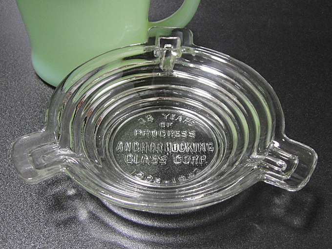 ★1943年製アンカーホッキング創設記念灰皿 アメリカン雑貨通販-OLD*SPICE 1943年頃に作られたファイヤーキングの製造元であるアンカーホッキング・グラス社の創設38周年記念マンハッタン灰皿です。◎8,000円(税込)以上送料無料!◎会員登録でいつも全品5%割引! 詳細・ショップページへ 投稿日:2020/05/07(Thu) 20:54記事No:1309