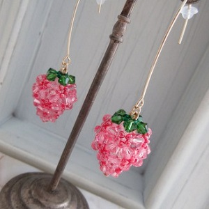 大粒いちごのピアスです。 OnceMore スワロフスキーで編んだいちごモチーフです。明るいピンクでキュートさにこだわりました。耳たぶから程よく距離をおいたフックです。茎にぶら下がったいちごのイメージ。揺れる度にキラリと主張する様はまさにスワロフスキーの醍醐味。いちご大好きさんにオススメの一品です。 詳細・ショップページへ 投稿日:2019/08/05(Mon) 15:50記事No:1293