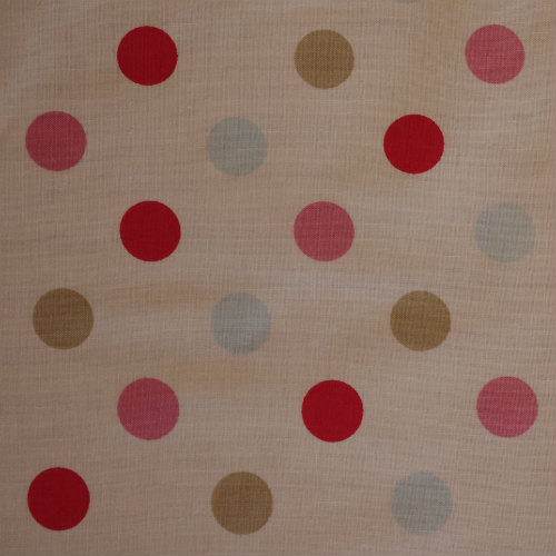 ルシアン Floral Collection A メアリー・ブラウン 白いベースにカラフルで大きなドットがかわいいです。キッチン小物などにどうでしょう。112cm幅です。30cm以上、10cm単位でカットさせていただきます。※単価は 10cmの価格です。 詳細・ショップページへ 投稿日:2017/06/29(Thu) 14:17記事No:1211