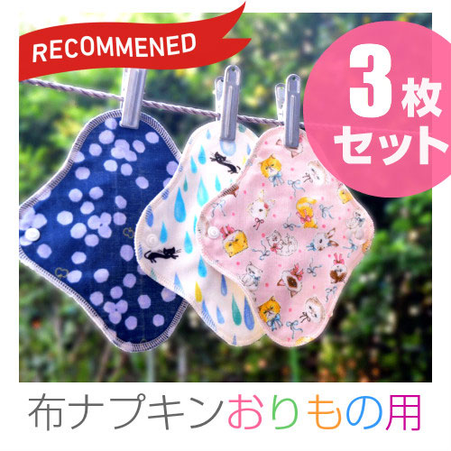 布ナプキン3枚セット もも椿オリジナル 布ナプキン専門店もも椿 防水なし、おりもの用布ナプキン3枚セットふわふわで傷みにくい、Wガーゼの優しい布ライナー。おりもの用の布ナプキンは、お洗濯のハードルも低く、はじめてのお試しやプレゼントにも喜ばれています。 詳細・ショップページへ 投稿日:2017/05/15(Mon) 19:01記事No:1181