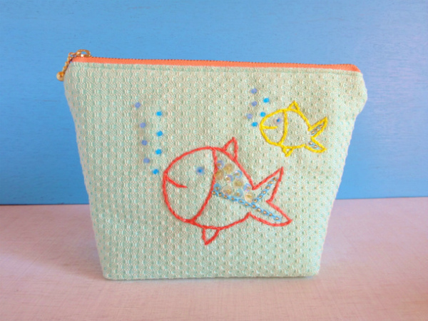 海辺の町らしくお魚や波に漂うヒトデの刺繍。