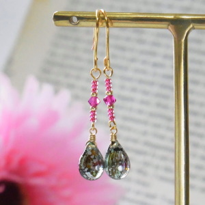 ←チェコのドロップビーズにとても小さなシードビーズを合わせたピアスです。