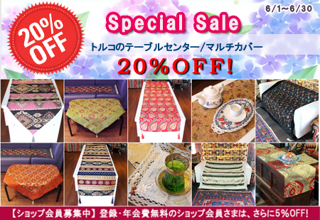 トルコのテーブルセンター・マルチカバーがALL20%OFF!