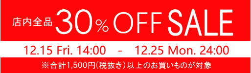 サイトリニューアルのため全品対象30%オフセール12/25までやっています♪ぜひご利用ください☆