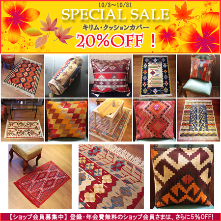 トルコのキリムとクッションカバーがALL20%OFF!!