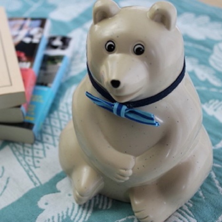 陶器の様に見えるプラスチック製のシロクマ貯金箱です