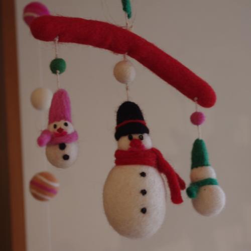 フェルトモビール雪だるま メアリー・ブラウン ネパールでハンドメイドで作られたあったかな質感のフェルトのモビール、ゆらゆら揺れる雪だるまさんのやさしい表情がほっとする空間を作ってくれます。サイズ:H150×W140×D35mm 素材:フェルト ループ紐付(100mm)ネパール製 詳細・ショップページへ 投稿日:2015/11/24(Tue) 16:46記事No:115