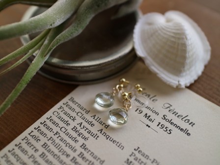 ミントジュレップ Nachi*zacca ちょっと甘めで爽やかな香りを感じる様な美しいミントグリーン。高い透明感のグリーンアメジストをシンプルなノンホールピアスにいたしました。清々しく透明感のある色合いは、耳元を吹き抜ける風のような気持のよい印象です。爽やかさの中にあるシロップのように甘やかな気持ちをこめて。 詳細・ショップページへ 投稿日:2016/04/01(Fri) 01:33記事No:908