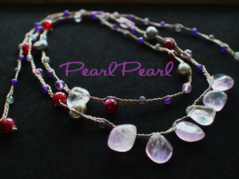 アメジストの編み編みネックレス PearlPearl アメジストや赤のジェイドに淡水パールの編み編みが可愛いです。手首にジャラジャラ巻いてブレスレット。 首にかけてロングネックレスに・・アレルギーの方にもやさしい編み編みNO金属です。 詳細・ショップページへ 投稿日:2015/12/20(Sun) 02:22記事No:832