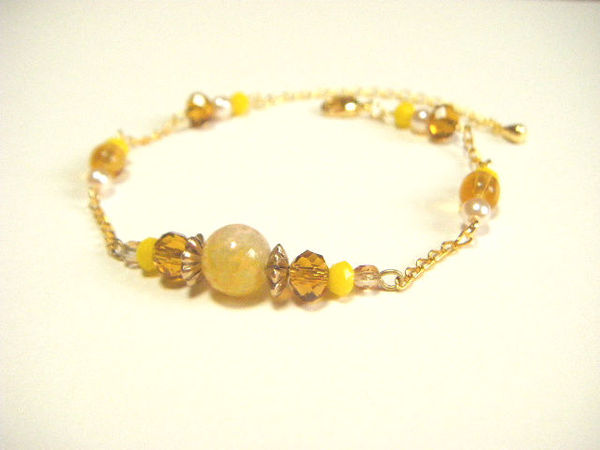 トパーズカラーのブレスレット Coloramelody これからのウィンターシーズンにぴったりなブレスレットとなっております☆ゴールド×トパーズの組み合わせがホワイト系のファッションによく合う素敵な作品に仕上がりました。長さは約21.5cmとなっております。(アジャスターを含む) 詳細・ショップページへ 投稿日:2015/12/01(Tue) 19:06記事No:809